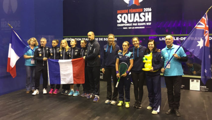 A Parigial Palais des Sports, l'Egitto, come da pronostico, vince il titolo mondiale a squadre femminili contro l'Inghliterra. La squadra egiziana che schierava le prime tre giocatrici al mondo ha però dovuto combattere e rimontare dopo la vittoria di Laura Massaro su Nour El Sherbini. Ma Nouran Gohar e Raneem El Welily non hanno fallito e per 2 a 1 riportano l'Egitto sul tetto del mondo. Contenti anche le francesi che salgono sul podio e Hong Kong che chiude al quarto posto.