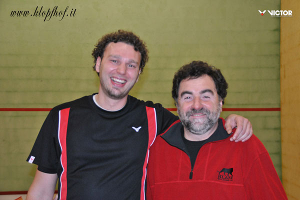 La prima semifinale tra Ambrosioni e Vettori non regala spettacolo, Vettori non è in giornata ed Ambrosioni ha inserito la modalità “schiacciasassi”. La seconda semifinale si trasforma in una sfida all’ultimo colpo tra un Bertoluzza, in splendida forma, ed un determinatissimo Cristellotti. Dopo quattro game con i parziali di 11/9, 7/11, 11/10, 8/11 si arriva al quinto game e Cristellotti, raschiando le ultime energie disponibili, si impone per 11/5. Finale conquistata, ma senza benzina non si va da nessuna parte e Maurizio Ambrosioni liquida così il compagno di club con un secco 3-0 (11/5, 11/3, 11/6).