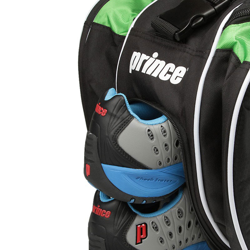 La borsa porta racchette Prince Tour Team 9X è fondamentale per le tue trasferte, offre la massima protezione per le tue racchette e spazio in abbondanza! Dotata di 3 ampi scomparti di cui uno termicamente isolato ideale per proteggere l'attrezzatura da sbalzi di temperatura. Può trasportare fino a 9 racchette, l'ampio vano principale è grande abbastanza da contenere un cambio e tutto l'occorrente per la doccia. Una tasca laterale per le scarpe impedisce che queste vengano a contatto con i vestiti o gli oggetti preziosi.