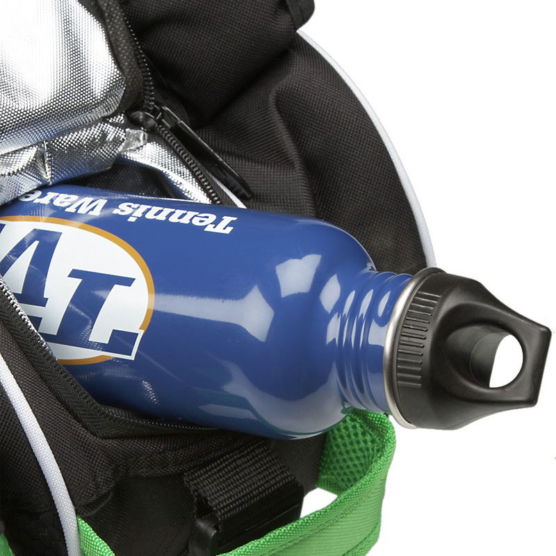 Completa la dotazione di questa fantastica borsa una tasca laterale termo isolata per inserire una bottiglia d'acqua e mantenerla fresca.